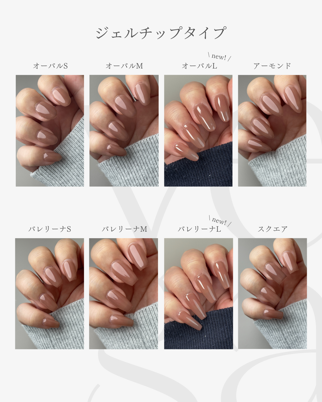 ノーマルタイプ:オーバルS / オーバルM / バレリーナS / バレリーナM / アーモンド / スクエア